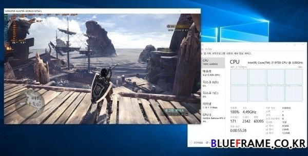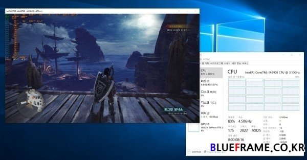 몬스터 헌터 월드( 코어 i7 9700 CPU 점유율 100% : 코어 i7 9900 CPU 점유율 83%)