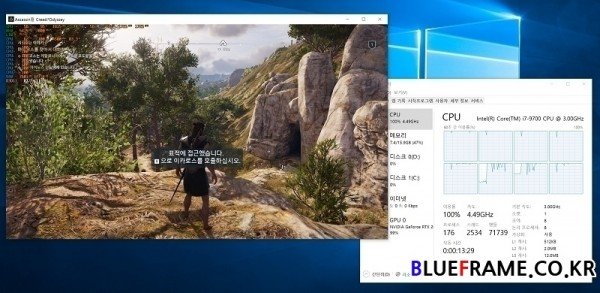 어쌔신크리드 오디세이 (코어 i7 9700, CPU 점유율 100% : 코어 i7 9900, CPU 점유율 68%)