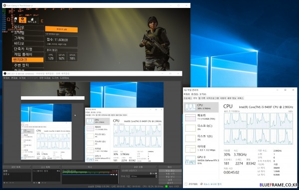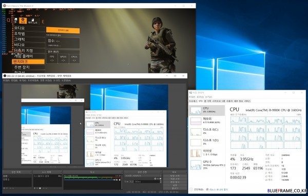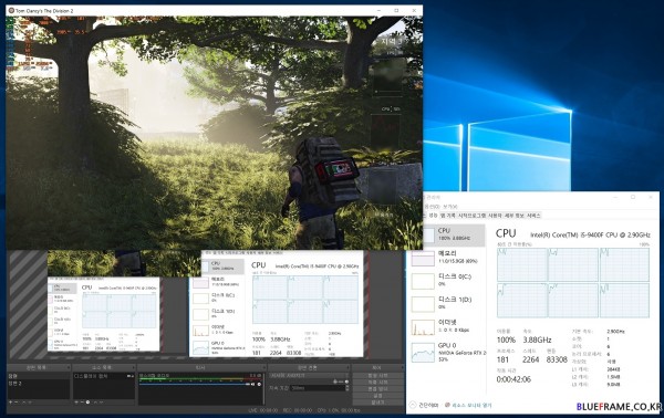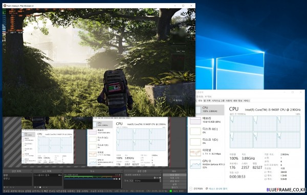 OBS와 6코어 6스레드(6C/ 6T) 기반 인텔 코어 i5 9400F 메인스트림 CPU, 엔비디아(NVIDIA) 지포스 RTX 2080 Ti(GeForce RTX 2080 Ti) 기반의 시스템과 톰 클랜시 더 디비전 2(Tom Clancy's The Division 2)을 실행해 디스플레이 캡처 방식으로 트위치를 이용한 실시간 방송(1080p 60fps, 비트 레이트 6000kbps cbr, 사운드 192KHz) 시나리오를 만들어 이를 확인해봤다.