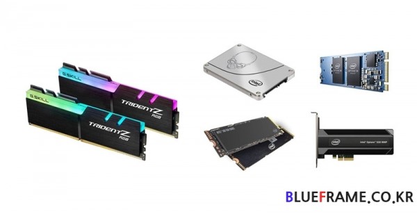 메모리 역시 CPU에 따라 9세대 코어 프로세서 공식 지원인 DDR4 2666MHz 또는 그 이상을 이용할 수도 있다. 인코딩이나 멀티 태스킹 등 자원 활용을 위해서는 4GB 2개 구성보다는 최근 가격이 낮아진 만큼 8GB 2개로 16GB를 구성하는 편이 유리하다. 상황에 따라서 또는 업그레이드 자금이 넉넉하다면 16GB 2개 32GB를 구성해도 좋을 것이다.