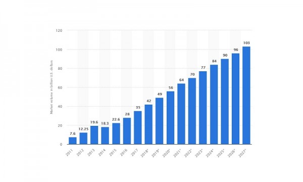 스태티스타(Statista)에 따르면 2011년부터 2027년까지 빅데이터 시장의 규모와 수익은 크게 증가하며 2019년 490억 달러(49 billion)에서 2027년에는 1천 30억 달러(103 billion us dolllars)에 이를 것으로 내다봤다.
