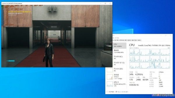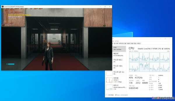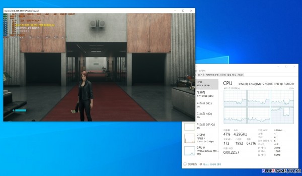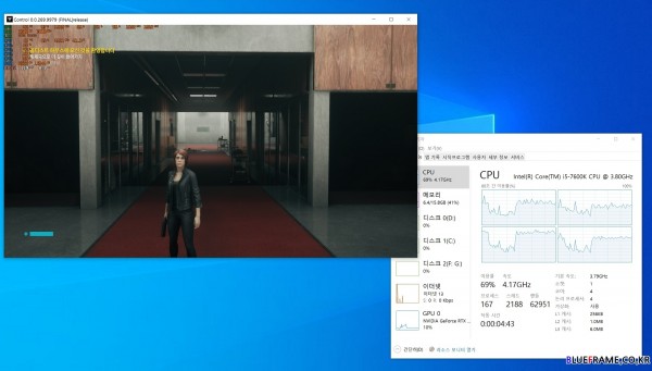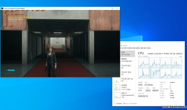 다른 게임들과 마찬가지로 컨트롤 게임에서도 다양한 변수가 발생할 수 있는 만큼 가급적 같은 조건의 상황 테스트를 위해 초반부 건물 내부, 변형되지 않은 조형물이나 가구, 책상 등이 배치된 공간을 이용해 왕복하는 방법으로 테스트를 진행했다. 실제 게임 상황에서 진행하는 많은 이를 고려해 테스트 결과를 참고하기 바란다. 테스트는 DirectX 12(DX12) 환경에서 프레임(FPS) 측정과 CPU 및 GPU 정보는 MSI 애프터버너(MSI Afterburner)를 이용했다.