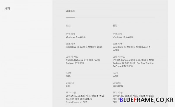 에픽게임즈 플랫폼에서 확인되는 PC 시스템 요구사양