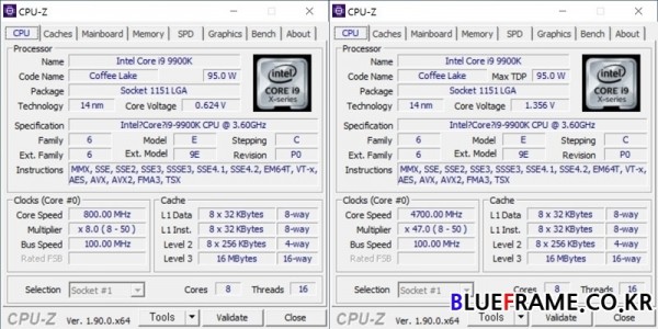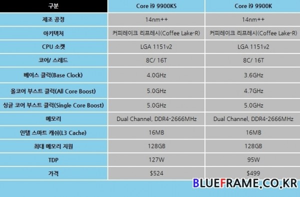 인텔 코어 i9 9900KS 올코어 5.0GHz (상)/ 코어 i9 9900K 올코어 4.7GHz (하)