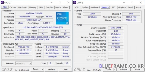 인텔 코어 i5 11400와 DDR4-3200MHz 메모리 클럭