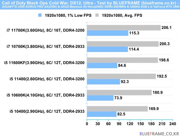 최신 게임일수록 멀티코어 활용도가 높아지는 추세이며 인텔 프로세서 최적화가 잘되고 있다. 코어 i5 11400은 게임에 따라 코어 i5 10600K(KF)와 코어 i7 10700K(KF)를 앞서는 프레임으로 향상된 게임 성능을 내줬다. 새로운 아키텍처와 메모리 클럭 향상, DDR4-3200MHz 메모리 클럭이 더해지면서 이의 영향을 받는 게임에서 향상이 예상된다.