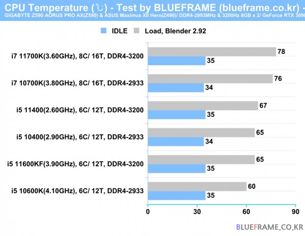 인텔 11세대 코어 프로세서는 기존 10세대 코어 프로세서 대비 향상된 성능을 제공하지만 온도와 전력 소모량은 증가한 것으로 알려졌다. 코어 i5 11400은 성능 향상 만큼 10400 대비 온도와 전력 소모는 증가한 것으로 확인된다. 14nm 공정 최적화와 새로운 아키텍처는 성능 향상을 가져왔지만 앞으로의 향상을 위해 제조 공정의 개선을 통한 최적화가 필요해 보인다.